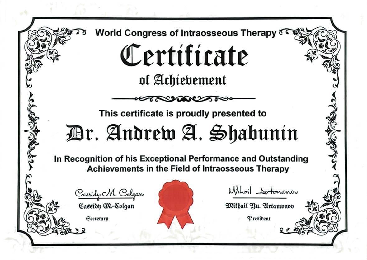 В США, известным Ученым и Нашим соотечественником Доктором Медицинских Наук Михаилом Юрьевичем Артамоновым давно создан и успешно работает Всемирный Конгресс Внутрикостной Терапии (WCIOT).